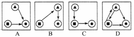 2、单选题 读图,如果炼1吨钢,需要2吨铁矿石和1吨煤,图中布局模式最合理的是(图中■代表煤矿区,▲代表铁矿区,●为消费区)(? )