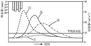 小题1:人类活动影响下形成的洪水过程线是:(?)