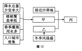 点评:本题考查气象灾害的成因,试题难度中等,解题关键是判断甲地的空间位置及寒潮、沙尘暴的成因。