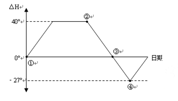 3、单选题 下图示意甲、乙两地每天的正午太阳高度之差(△H)在一年中的变化情况,据此回答下列各题。