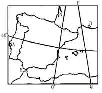 4、单选题 当下图中PQ线为昏线且该线上的点最高纬度为700时,一艘海轮将一批货物从B港运往A地,据此回答下列问题