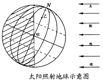 点评:本题难度较小,解答本题的关键是注意极圈内的现象,注意甲乙两地的经纬度位置。