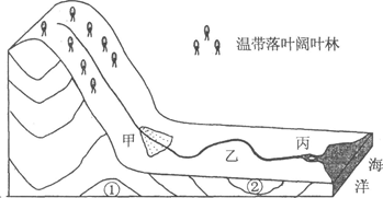 (2)甲、乙、丙三处均为流水堆积形成的地貌,它们分别为?、?和?。