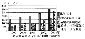 3、单选题 该图为我国某省制造业部分行业工业总产值增长示意图,读图完成8-9题。