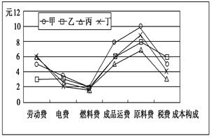 1、单选题 某地政府拟开办一家工厂,在选定的甲、乙、丙、丁四地的成本比较如下图。据图完成题。