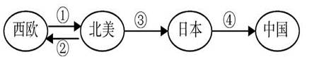 4、单选题 2011年全球汽车产量为8010万辆,中国则以1840万辆的产量成为世界最大的汽车生产国,世界汽车工业出现了第四次转移。结合世界汽车工业四次转移示意图(下图),回答下列问题。
