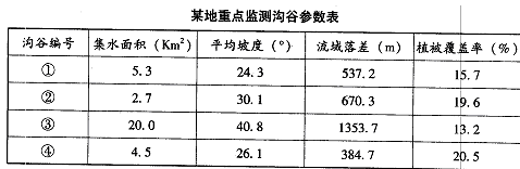 1、单选题 我国是个多山的国家,随着山区经济发展,对泥石流减灾提出了更高的要求。据表,回答下列各题。