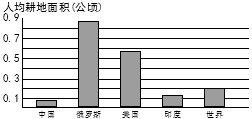 2、综合题 (25分)耕地是人类获取食物的重要基地,是人类社会生存与发展的物质基础。图1为世界耕地资源分布及各洲耕地面积、人均耕地面积比较示意图,图2为部分国家及世界人均耕地面积比较(2007年)示意图,回答问题。