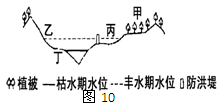 2、单选题 “三农”问题是我国发展的重中之重。图10是“我国南方某县某河流下游横截面略图”,该河下游所在地区的地形以低山丘陵为主。读图回答问题。