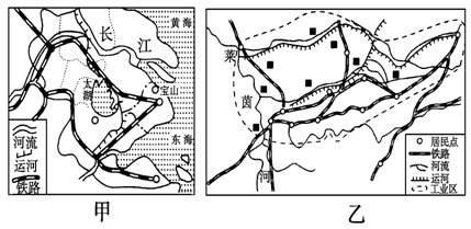 本题解析:1.图甲为我国的沪宁杭工业基地,乙为德国的鲁尔工业区。两工业区地理位置优越,水陆交通便利,城市人口密集,劳动力素质高。乙工业区煤炭资源丰富,甲工业区为“鱼米之乡”。所以本题选择C选项。