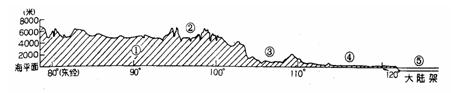 5、综合题 (10分)读“沿北纬320纬线我国地形剖面图”,完成下列要求: