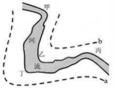 4、单选题 下图中虚线为等压线且 a 大于 b,以下四处河岸侵蚀较重且此时最可能出现阴雨天气的是