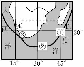 【小题1】下列四幅图中,与①处当日日出时刻相符的是(注:阴影部分表示夜半球,?表示①处位置)( )
