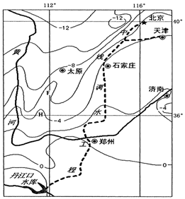 (3)图中丹江口水库出口处和北京两地的平均温差约为___ __?℃,其主要原因是____。