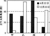 1、单选题 下图为四地二至日正午太阳高度。读图回答。