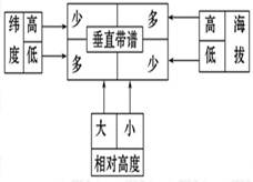 小题1:影响山体垂直带谱复杂程度的因素主要有山坡自然带谱的多少与山地所处的地理纬度、山地海拔高度、相对高度及坡向等因素有关(如图).