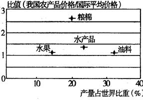 4、单选题 我国加入WTO以来,很好地履行了承诺,农业也获得了较大发展,但农业生产仍然面临严峻挑战。读“我国主要农产品产量和价格与世界相应指标关系图(图八)”,回答1-2题:
