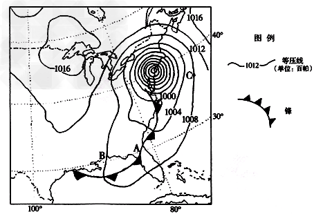 3、单选题 读北美飓风“艾琳”影响时的地面天气系统图。判断以下说法正确的是