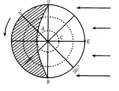 (4)下图中正确表示上图太阳照射地球状况的是(阴影表示黑夜)( )