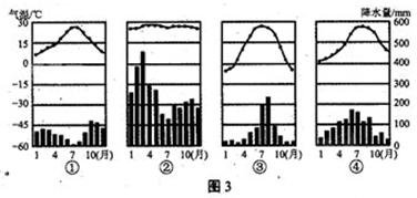 小题2:P地为地中海气候,与图3中四种气候类型对应的是