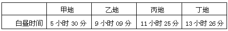 5、单选题 下表是12月22日甲、乙、丙、丁四地白昼时间,读数据回答1—3题。