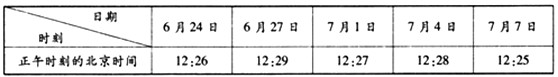 3、出现表格中不同日期正午时刻北京时间不同的原因可能是