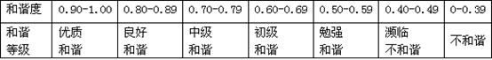 资源—环境—社会—经济复合系统和谐度指标体系由资源环境子系统(资源丰度、环境压力、环境治理、环保水平等)、经济子系统(经济总量、经济质量、经济结构等)和社会子系统(人口状况、基础设施、科技进步、城市发展等)组成。图是我国某城市群2000-200年资源—环境—社会—经济复合系统和谐度变化趋势图,表是和谐度等级划分表。