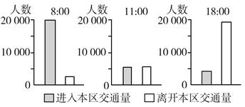 4、单选题 下图是“城市内部某区域不同时段地铁运输人数统计图”。据图完成各题。
