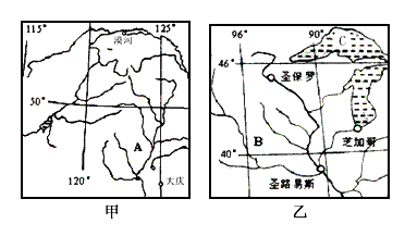 5、综合题 ?读甲乙两区域图,完成下列问题。