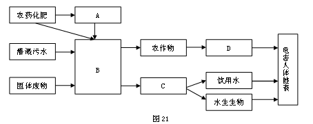 1、综合题 读“土壤污染物进入人体的途径示意图(图21)”,回答下列问题。(10分)
