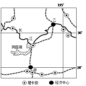 (1)连接两大经济中心的铁路干线是_______。甲城市是长株潭城市群中的核心城市之一,影响该城市形成和发展的主要因素是________ 。(6分)