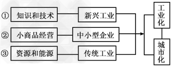 下图为三种工业化、城市化模式图,读图完成1~3题。
