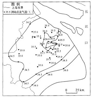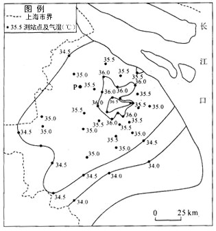 1、综合题 下图表示某研究小组实测的上海市某日14时气温分布状况。读图完成下列要求。