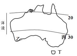 3、单选题 读下图澳大利亚轮廓图,完成下列各题。