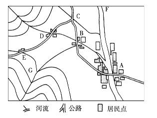 (2)图中F、C、E、G四地中,有可能发展成为聚落规模最大的一处是?,理由是?。(3分)
