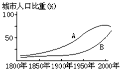 (1)A、B两条曲线中代表发达国家城市化进程的是__? __曲线,代表发展中国家城市化进程的是__?__