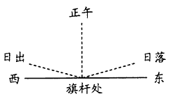 (2)下图是他们绘制的冬至日旗杆影子在日出、正午、日落时的示意图。该图表达是否正确?为什么?