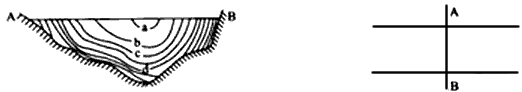 (2)若上右图中A、B与左图中A、B表示的河岸相同,那么这段长江的流向是