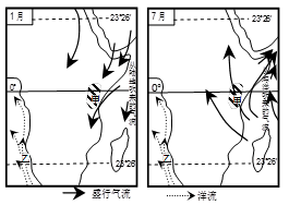本题解析:甲地为赤道附近的东非高原,受地势影响形成全年高温,一年分干湿两季的热带草原气候。夏季(1月)受来自陆地干热气流影响,炎热干燥,为干季;冬季(7月)受来自海洋暖湿气流影响,高温多雨,为湿季。因此A正确。