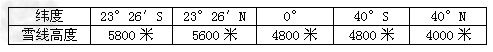 4、单选题  读雪线高度随纬度变化表,回答1—2题。?