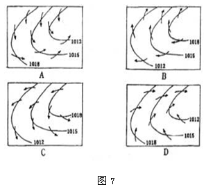 【小题2】当武汉正值图6中阴影部分对应的月份时,常受图7中哪种天气系统的影响( )