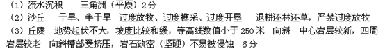 (2)B图是?地貌,往往形成于?地区;近年由于人类?等不合理的活动,造成B图中的景观出现不断蔓延、扩大的趋势。治理这种危害应采取的措施为?。7分
