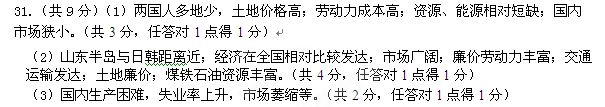 (2)简析山东半岛成为日韩产业转移承接地的优势。(4分)