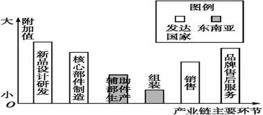 材料二: 最近几年发达国家在东南亚地区一些国家进行产业转移,工业产业链环节上的分工情况