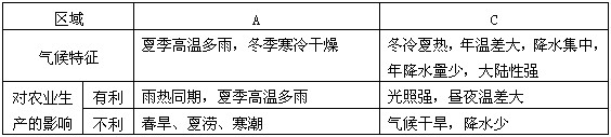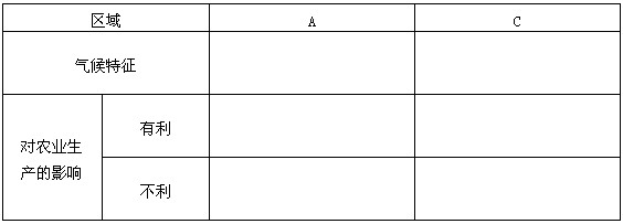 (4)分析图中A、C两地气候特征差异及对农业生产的影响。