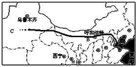 材料一:"陆海统筹海水西调高峰论坛"于2010年11月5日在乌鲁木齐市召开,在全国引起广泛热议。"海水西调,引渤入新"事业的基本思路是:从渤海西北海岸提送海水达到海拔1200米高度,到内蒙古自治区东南部,再顺42°N线东西方向的洼槽地表,流经燕山、阴山以北,出狼山向西进入居延海,绕过马鬃山余脉进入新疆。
