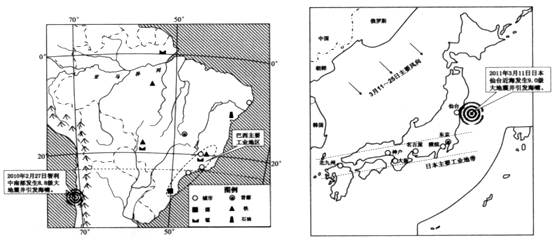 (2)日本和巴西工业分布的相同特点是___? ____??,形成该分布特点的不同原因分别是____? ___? __和___? ___?_。(6分)