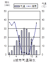 (2)描述A城市的气候特征,并分析原因。(10分)