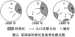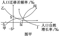 1.甲曲线所代表的城市2.根据图乙信息推断,M地区人口变化情况符合图甲中的