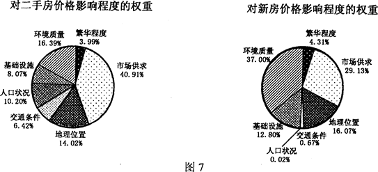 2、单选题 图7是上海市某区域住房价格各因素的影响权重示意图,读图完成小题。